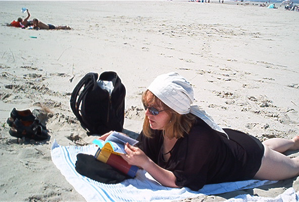 während frau w. sich ihrem exhibitionismus widmet, schwört frau w. (mit holder kopfbedeckung und cooler sonnenbrille) auf bildung!